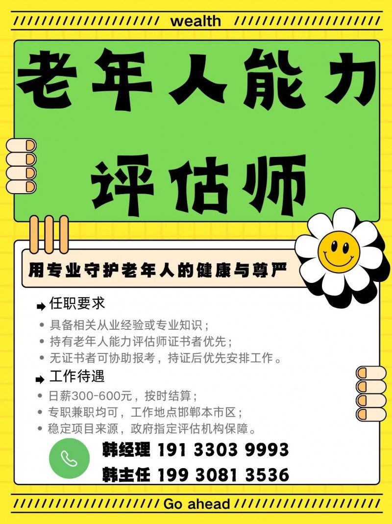 我司为政府指定评估机构,诚招老年人能力评估师。