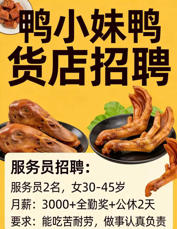 鸭小妹鸭货店招聘
