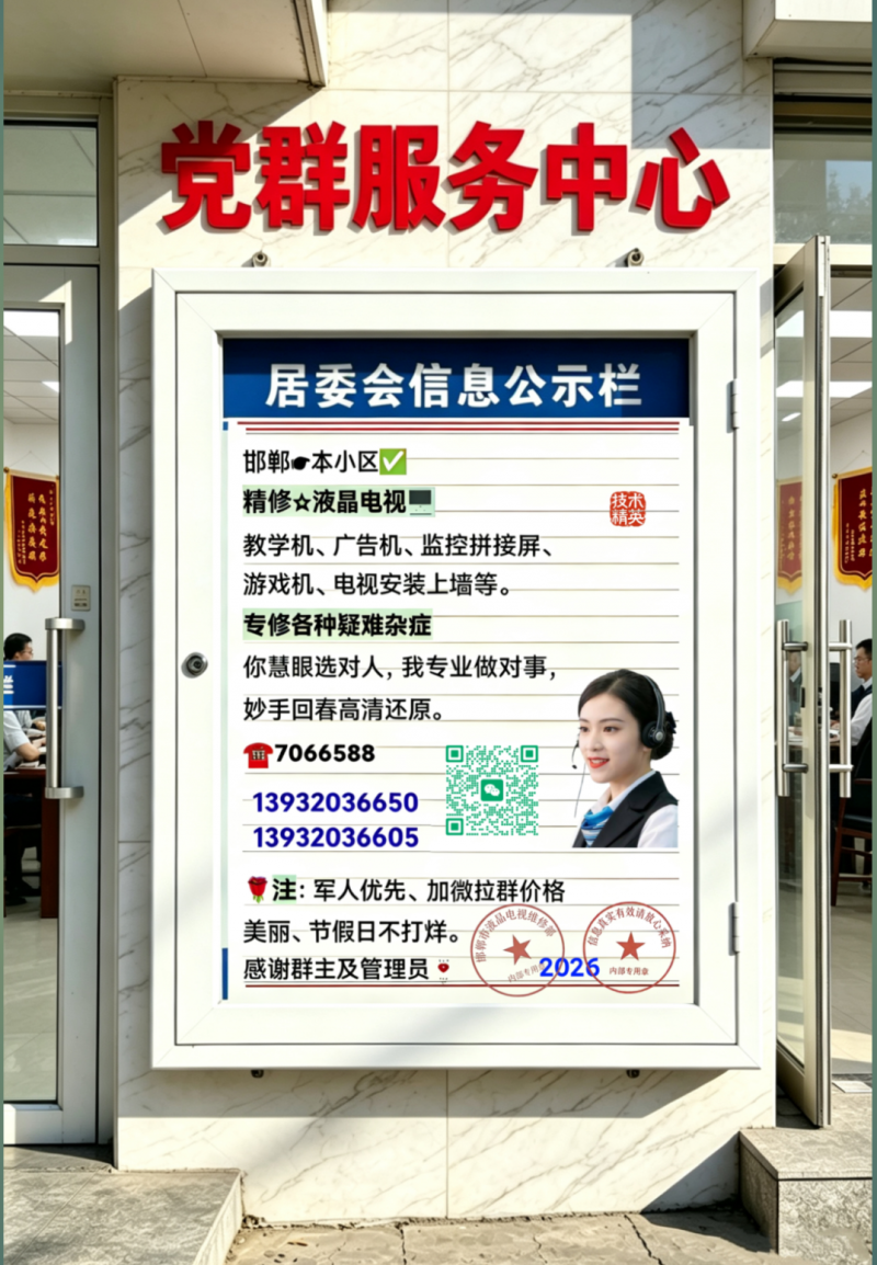液晶电视维修安装,快速上门现场维修,十五年只修液晶电视,因为专一所以专业,邯郸市内均可上门服务。